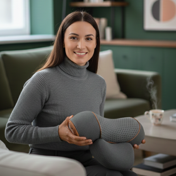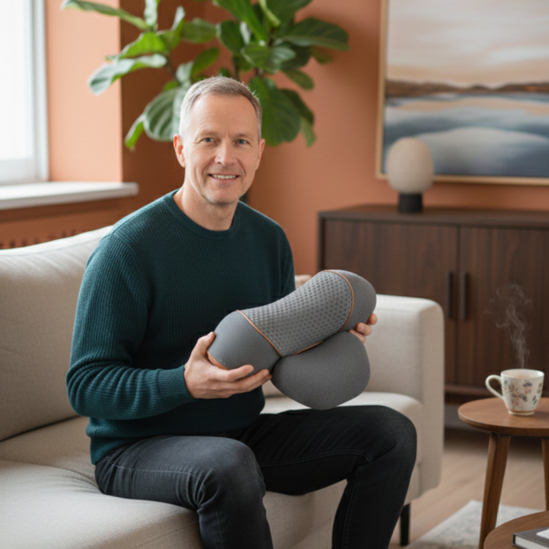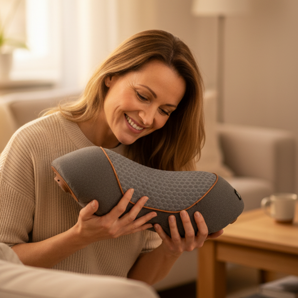 FisioRest combineert therapeutische massage, herstellende warmtetherapie en cervicale tractie — allemaal slim verpakt in één apparaat dat je eenvoudig thuis kunt gebruiken.