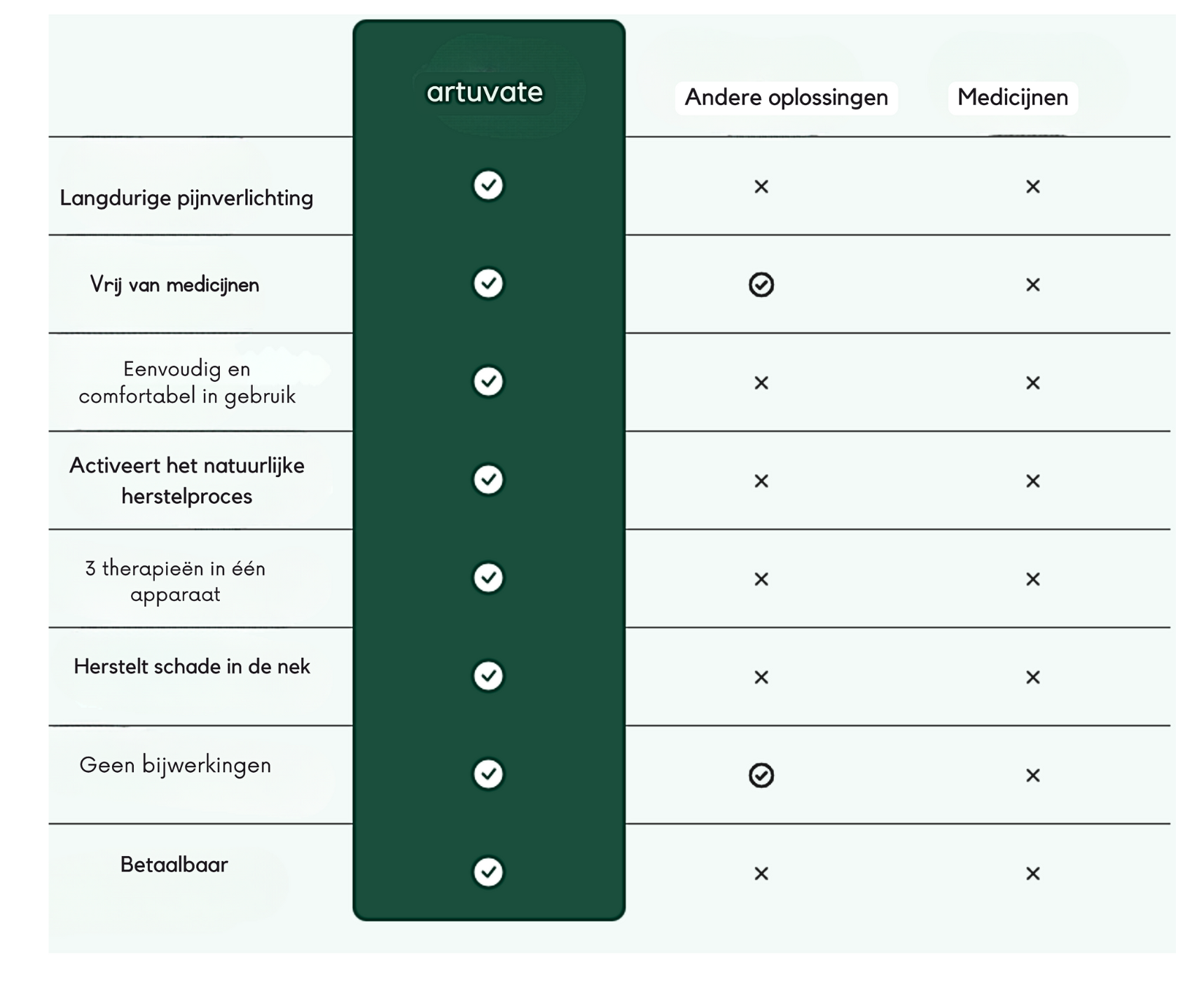 Laten we de FisioRest-massager van Artivate vergelijken met andere oplossingen (zoals massagetoestellen, fysiotherapiesessies, andere apparaten) en pijnmedicatie.